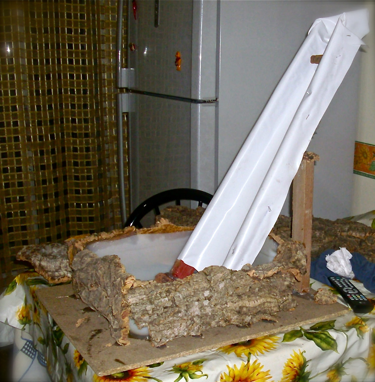 The crib has set up at his house, he sacrificed a room to put it on display, where the light effects, hiss of water and music surround the main work of the Nativity.